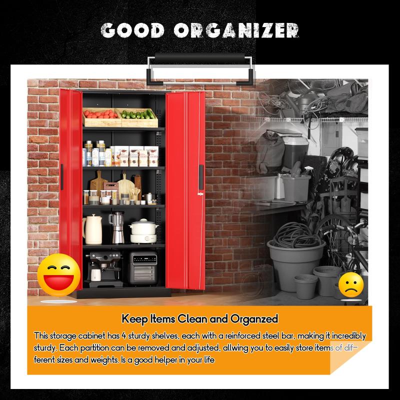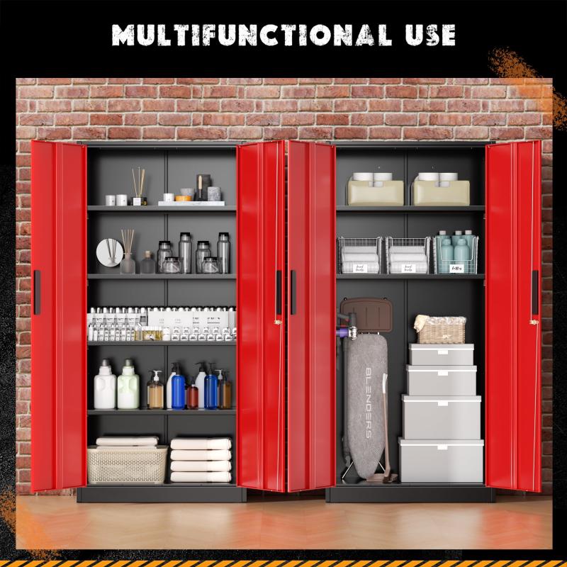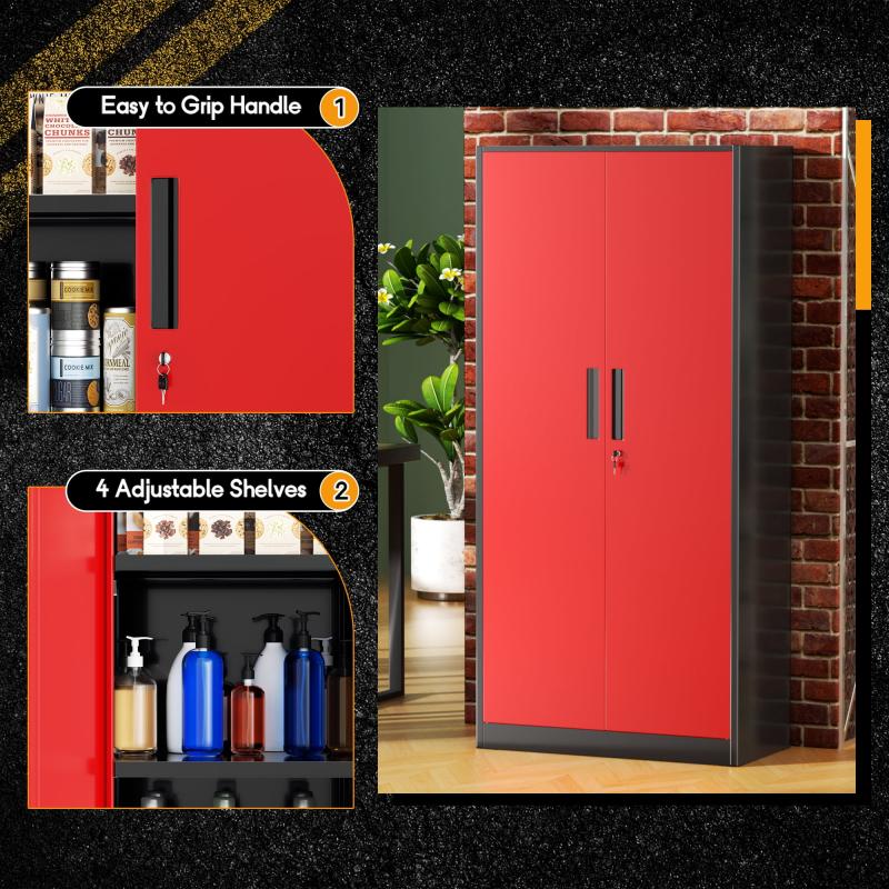 SOLAURA Metal Storage Cabinet, 71" Garage Storage Cabinet with Lock, Black Red Metal Cabinet with 2 Doors and 4 Adjustable Shelves for Home Office, File, Easy Assemble
