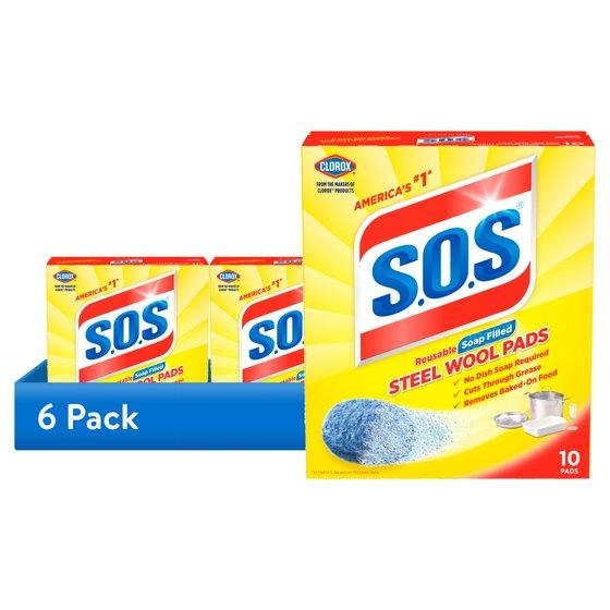 (6 pack) S.O.S Steel Wool Dish Scrubber Pads, 10 Pack