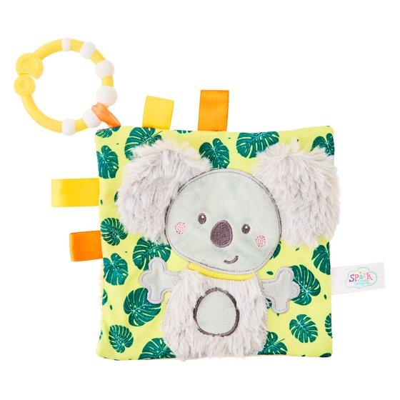Help your baby’s development and engage them in playtime with the Spark Create Imagine Taggie Crinkle Paper Toy. Featuring friendly koala on a soft-to-the-touch and plush pages. Tags on two of the sides teach your child how to turn pages on a book, while crinkling and squeakers inside makes more fun! This fun toy encourages holding, movement, and engagement to promote sensory development as well as hand-eye coordination. Plus, the Spark Create Imagine Taggie Crinkle Paper Toy can be easily brought into the car seats and baby carriers for play during car rides and errands!