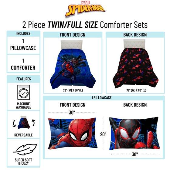 Spiderman Techno City Kids 2 Piece Blue Reversible Comforter and Pillowcase Set, Twin/Full