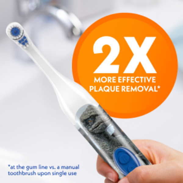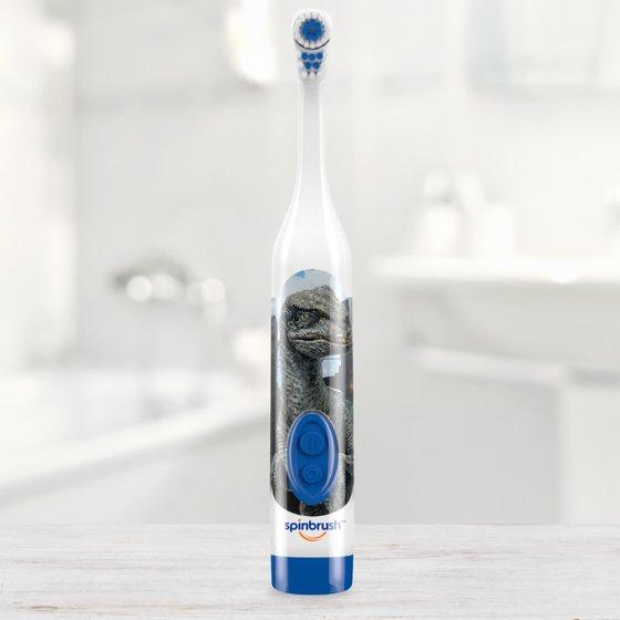- Brushing is a dinosaur adventure for ages 3 and up with this electric toothbrush; kids brush 38% longer with Spinbrush vs. a manual kids toothbrush
