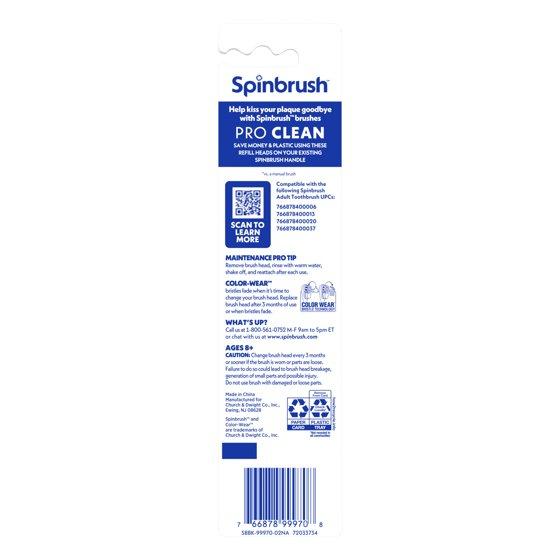 Spinbrush NEW PRO CLEAN Replacement Heads, Electric Toothbrush Refills, Soft Bristles, 2 Count