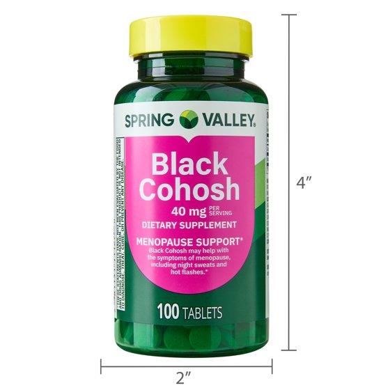 Our Spring Valley Black Cohosh Tablets Dietary Supplement is formulated for menopausal support.* Black cohosh may help with the symptoms of menopause, including night sweats and hot flashes.* The suggested adult dosage is two tablets daily, preferably with food. These tablets are free of gluten, artificial colors or flavors, and lactose. You can rest assured Spring Valley Black Cohosh Tablets Dietary Supplement, 40 mg is produced with strict quality guidelines and is backed by our quality guarantee.
