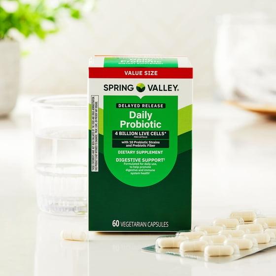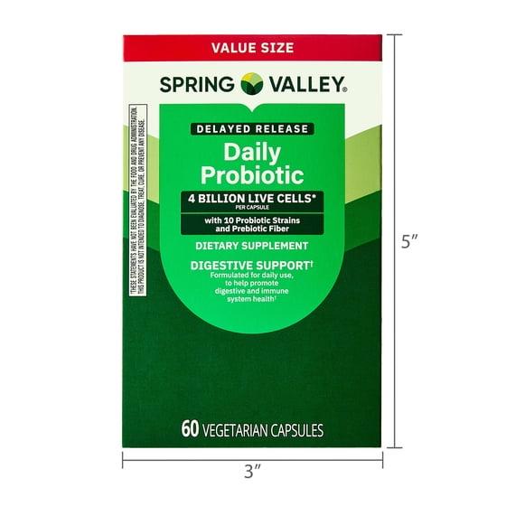 - Spring Valley Daily Probiotic Delayed Release Capsules for Digestive Health, 4 Billion Live Cells, 60 Count