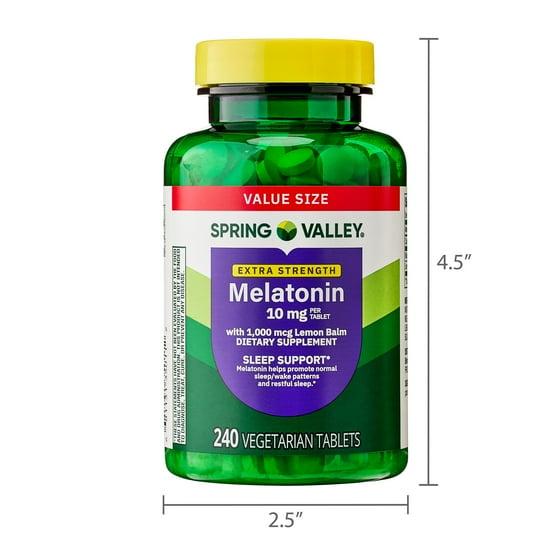 Our Spring Valley Extra Strength Melatonin Tablets Dietary Supplement Value Size, 10 mg can help you get through those restless nights and achieve the amount of sleep you need to function properly during the day.* Melatonin is a naturally occurring compound that is produced by the body. It has been associated with normal body rhythms and sleep/wake patterns.* The body naturally releases melatonin in response to changes in light, and with melatonin levels rising at night, this supplement supports that natural function.* Lemon balm is a perennial herb from the mint family that has been used for thousands of years for culinary, cosmetic, and medicinal purposes. With its calming properties, melatonin with lemon balm may support a healthy stress response and promote restful, quality sleep.* This extra strength formula delivers 10 mg of melatonin and 1,000 mcg of lemon balm per tablet. It is free of gluten, dairy, preservatives, artificial colors, flavors and sweeteners, and is suitable for a vegetarian diet. Get the restorative rest you need with Spring Valley Extra Strength Melatonin Tablets Dietary Supplement Value Size, 10 mg!*