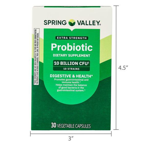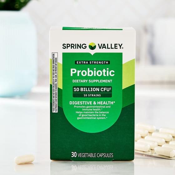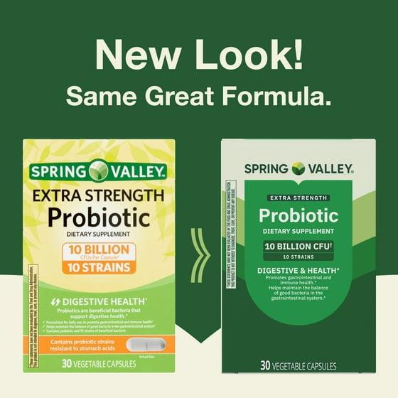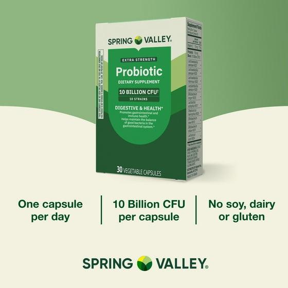 - Spring Valley Extra-Strength Probiotic Vegetable Capsules for Digestive and Immune Health, 10 Billion CFU, 30 Count