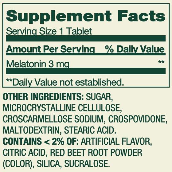 - 3 mg melatonin per tablet
