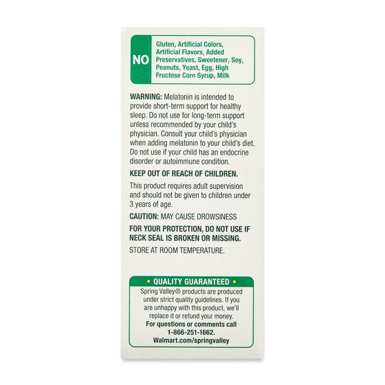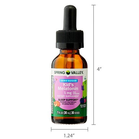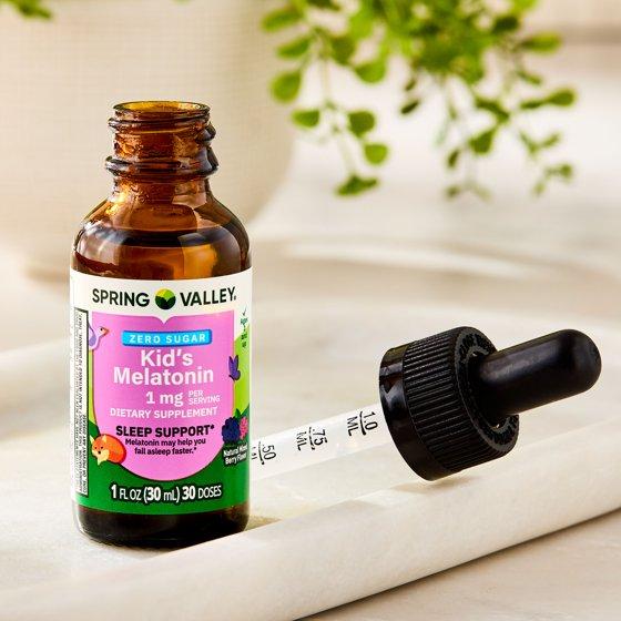 - Spring Valley Kid’s Melatonin Liquid Dietary Supplement, 1 fl oz, 1mg, Berry Flavor