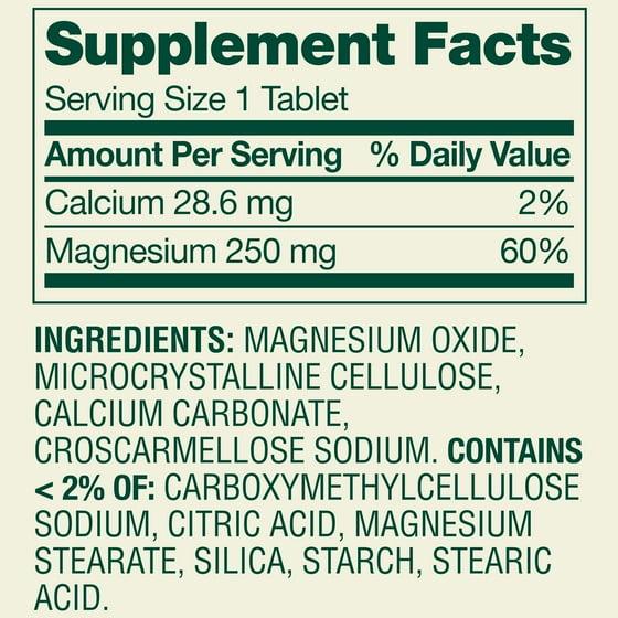 - 250 mg of magnesium per tablet