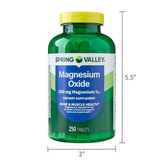 - Spring Valley Magnesium Dietary Supplement Tablets for Bone and Muscle Health, 250 mg, 250 Count