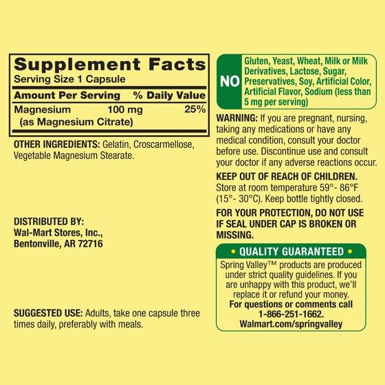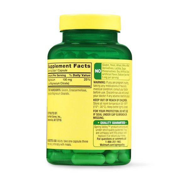 - Spring Valley Rapid-Release Magnesium Citrate Bone Health Dietary Supplement Capsules, 100 mg, 100 Count