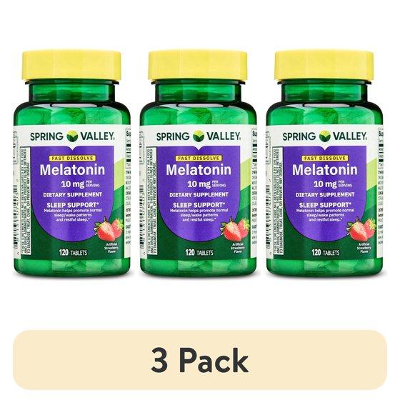 (3 pack) Spring Valley Melatonin Sleep Support Dietary Supplement Tablets, Strawberry, 10 mg, 120 Count