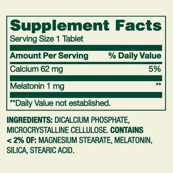 - 1 mg of melatonin per tablet