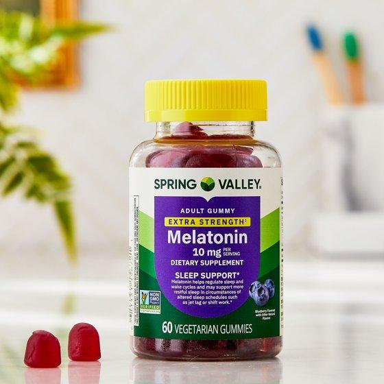 - Spring Valley Extra Strength Melatonin Sleep Support Dietary Supplement Gummies, Blueberry, 10 mg, 60 Count
