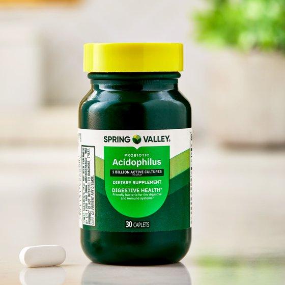 - Spring Valley Probiotic Acidophilus Caplets for Digestive Health, 1 Billion Active Cultures, 30 Count