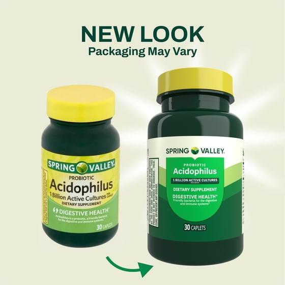 - Spring Valley Probiotic Acidophilus Caplets for Digestive Health, 1 Billion Active Cultures, 30 Count
