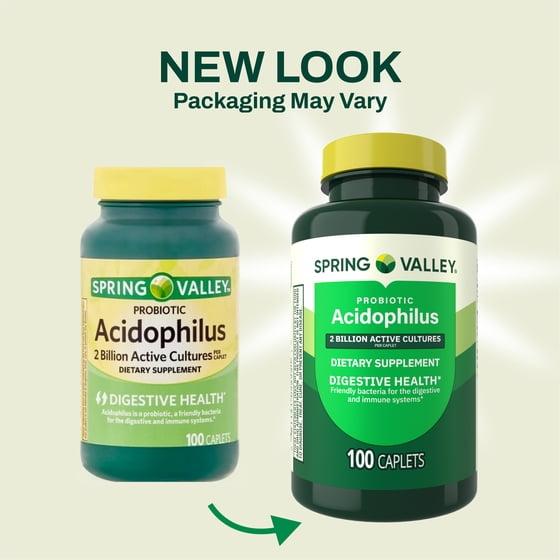- Spring Valley Probiotic Acidophilus Caplets for Digestive Health, 2 Billion Active Cultures, 100 Count