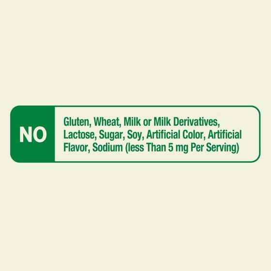 - No gluten, wheat, milk or milk derivatives, soy, lactose, or sugar