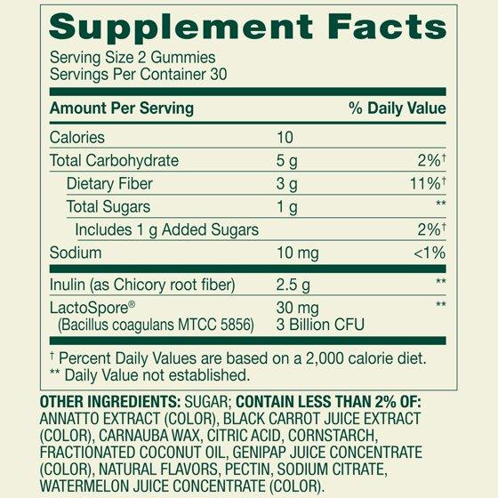- Spring Valley Probiotic with Prebiotic from Inulin Vegetarian Gummies for Digestive Health, Assorted Flavors, 3 Billion CFU, 60 Count