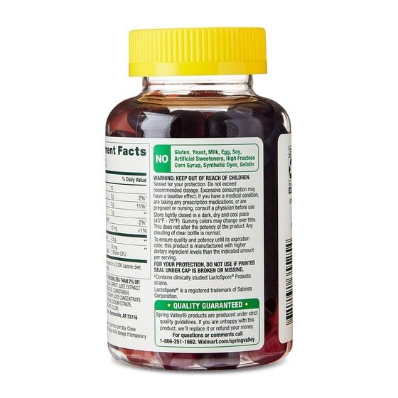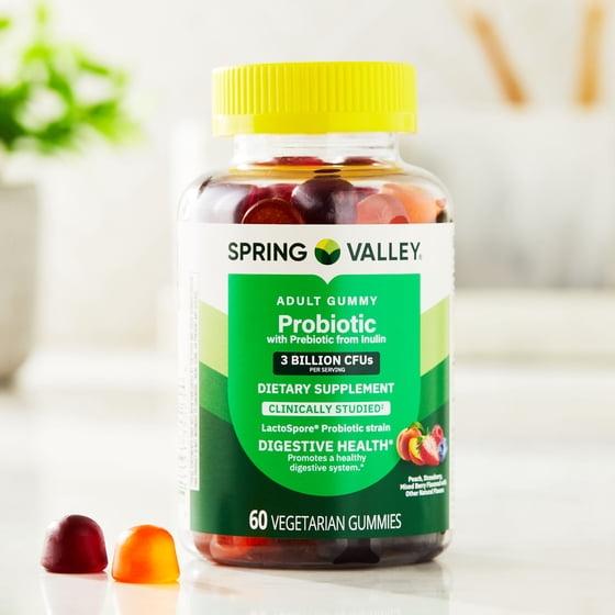 - Spring Valley Probiotic with Prebiotic from Inulin Vegetarian Gummies for Digestive Health, Assorted Flavors, 3 Billion CFU, 60 Count