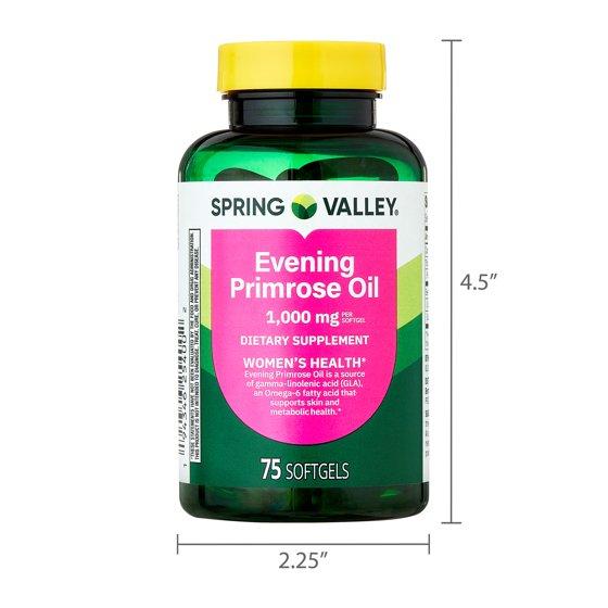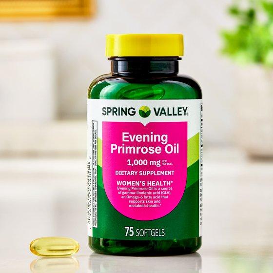- Spring Valley Standardized Evening Primrose Oil Women’s Health Dietary Supplement, 75 Softgels