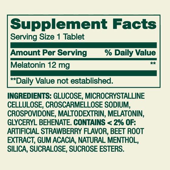 - 12 mg of melatonin per tablet