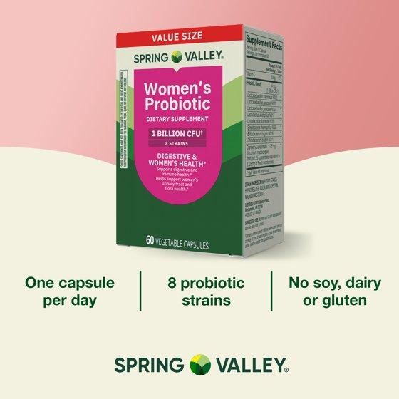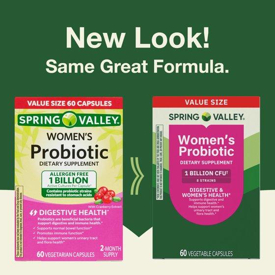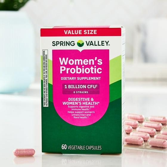 - Spring Valley Women's Probiotic Dietary Supplement Vegetarian Capsules for Digestive Health, Cranberry, 60 Count Value Size