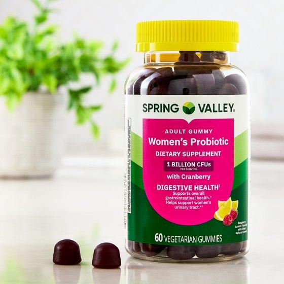 - Spring Valley Women's Probiotic with Cranberry Vegetarian Gummies for Digestive Health, Raspberry Lemon, 1 Billion CFU, 60 Count