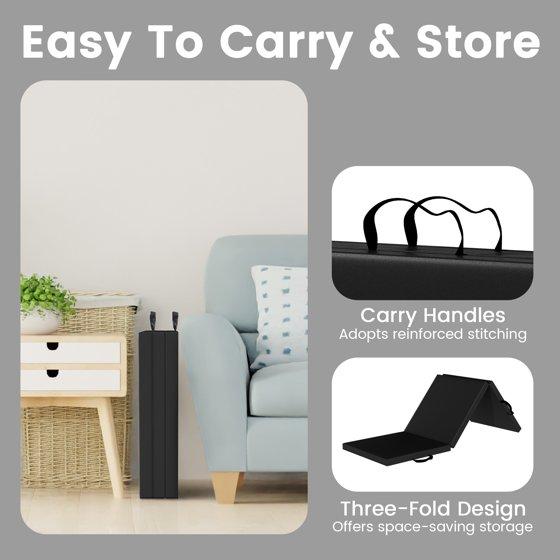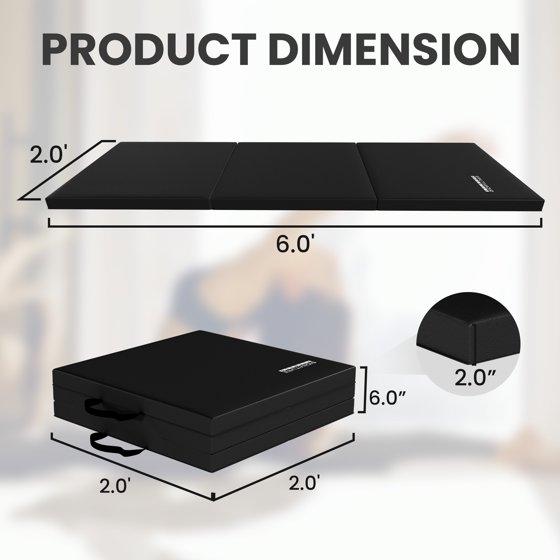 - Portable Exercise Mat: A foldable, 3 panel design and handles on each mat make it easy to store and Transport your mat. Expanded dimension: 6' x 2' x 2"; folded dimensions: 24" x 24" x 4.5".