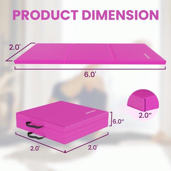 - Portable Exercise Mat: A foldable, 3 panel design and handles on each mat make it easy to store and Transport your mat. Expanded dimension: 6' x 2' x 2"; folded dimensions: 24" x 24" x 4.5".