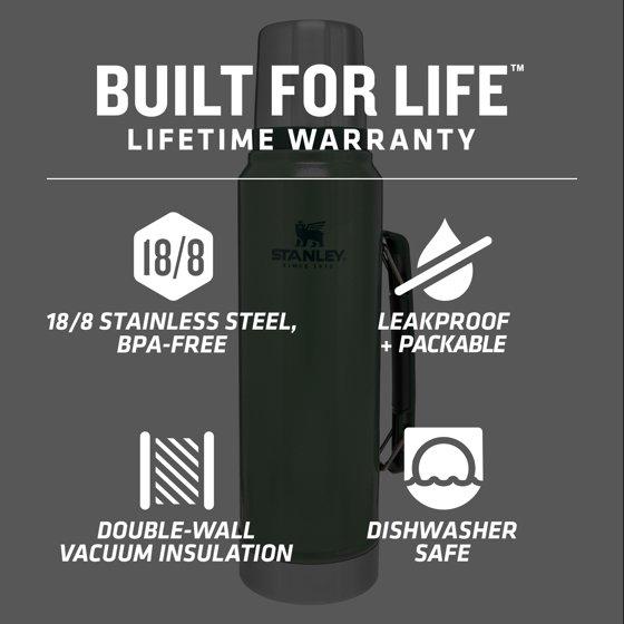 Stanley Classic Stainless Steel Vacuum Insulated Thermos Bottle, 1.1 qt