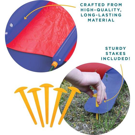- INCLUDES BODY BOARDS & STAKES: These waterslides for kids backyard includes two 24”x15.5” body boards, and six 5.8” ground stakes. Secure the water slide with the pegs and inflate the boogie boards for speedier sliding. Time for a water blast!