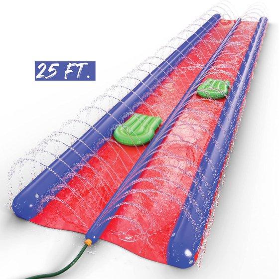 Stargo Double Lawn Water Slide Spraying Slip and Slide, Giant Backyard 25 feet Slide with 2 Inflatable Sliding Body Boards and Built in Sprinkler, Outdoor Wet Summer Fun or Snow Sledge