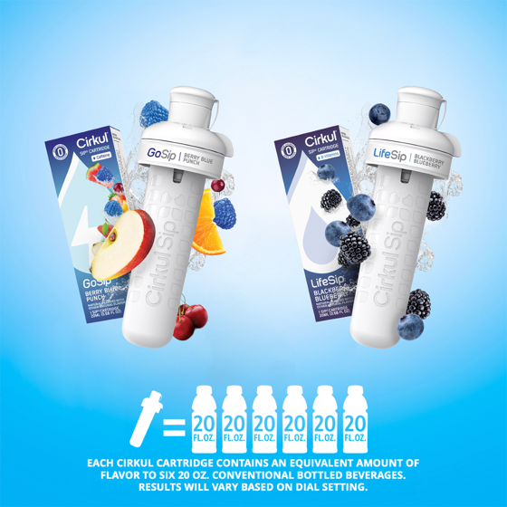 - MULTIPLE REFILLS ON THE GO: Each Cirkul cartridge contains an equivalent amount of flavor to six 20oz. conventional bottled beverages. Results will vary based on dial setting.