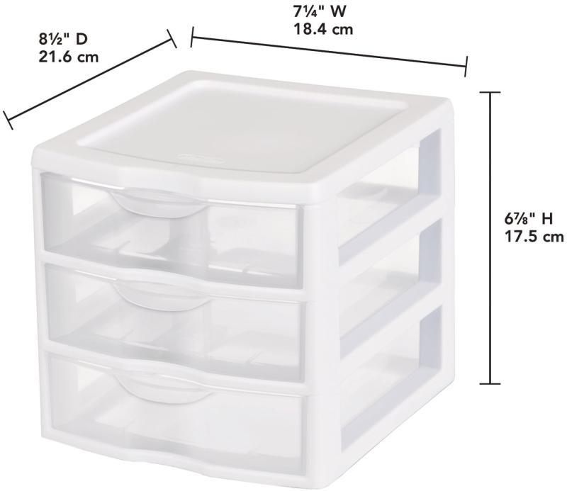 - Sterilite Clear view small Three Drawer Unit. White