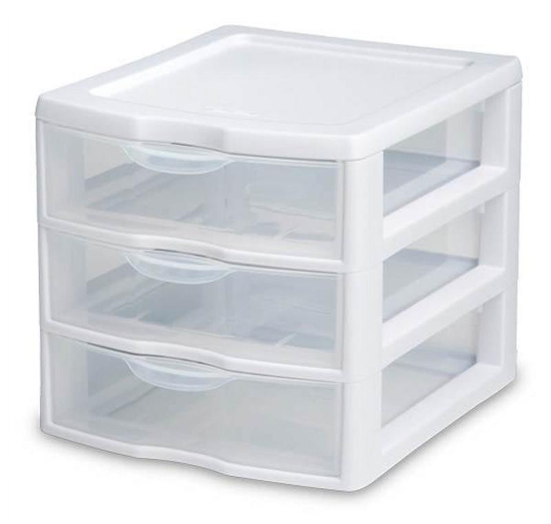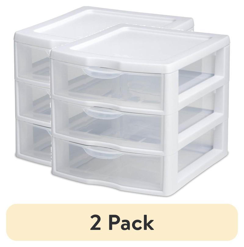 (2 pack) Sterilite, 3 Drawer Clear Storage Bin, Desktop Drawer Storage Container, White