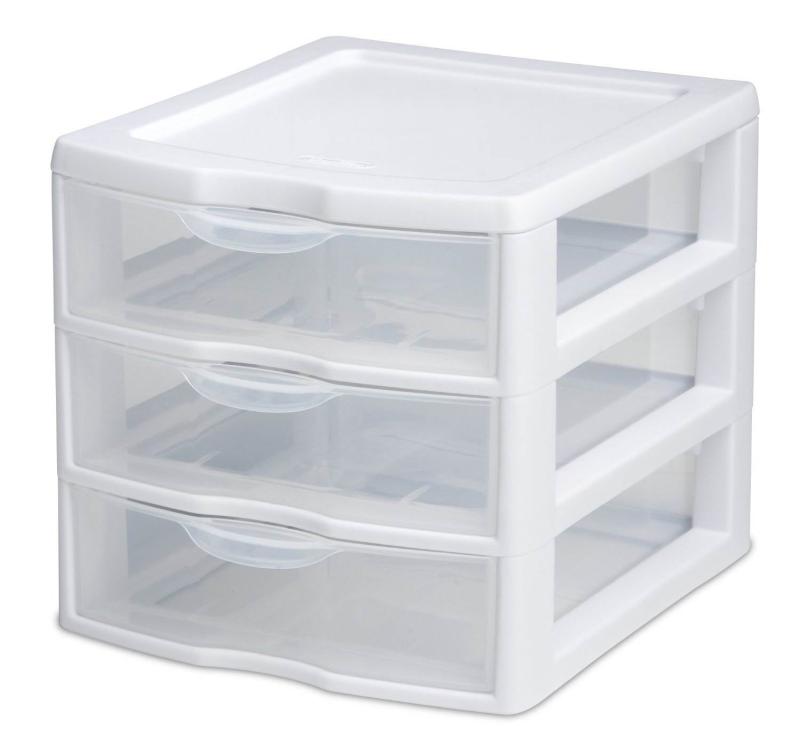 (2 pack) Sterilite, 3 Drawer Clear Storage Bin, Desktop Drawer Storage Container, White