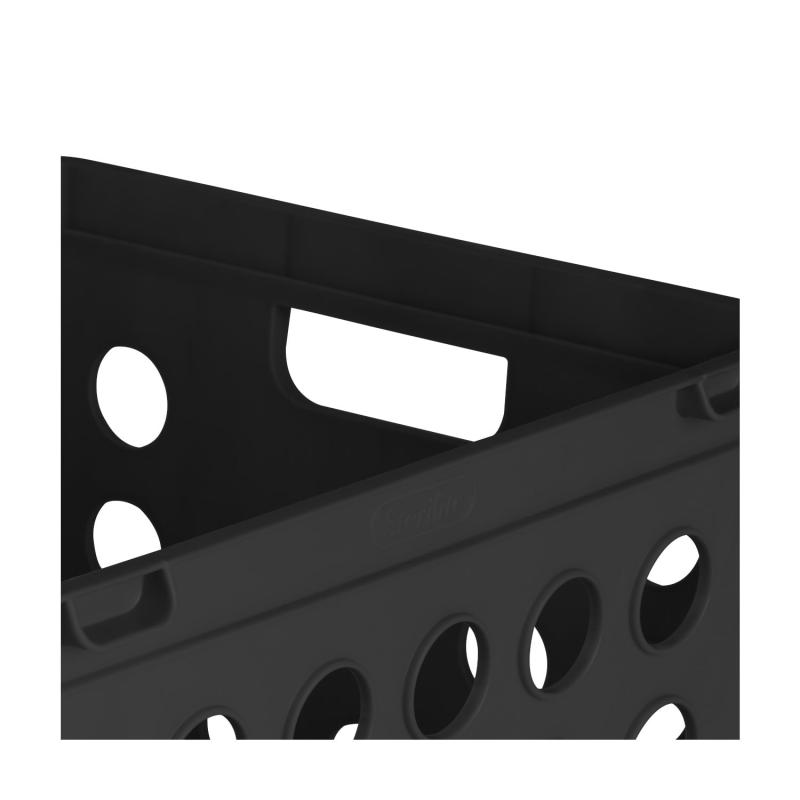 Discover the versatile Sterilite File Crate, your go-to solution for countless storage needs! Featuring carry-through handles, this plastic bin is ideal for both storing and transporting. Stack multiple crates to maximize vertical space or create bookcase-style shelving by stacking them sideways. This file tote can efficiently organize and store either letter or legal-sized hanging files, as well as office, school, household, and garage essentials like notebooks, albums, sports gear, and cleaning supplies. The File Crate is also a popular solution to keep college dorm room necessities organized and contained. The overall assembled dimensions of this item are 17 1/4" L x 14 1/4" W x 10 3/4" H.