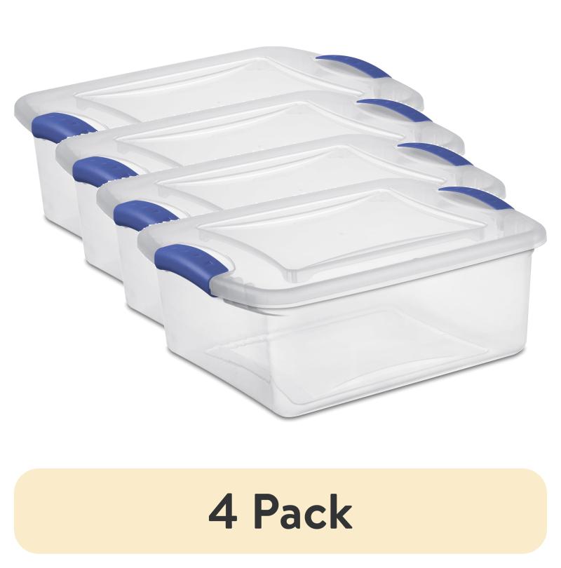 - Sterilite 15 Quart Latch Box, Small Clear Plastic Storage Bin with Lid, Blue