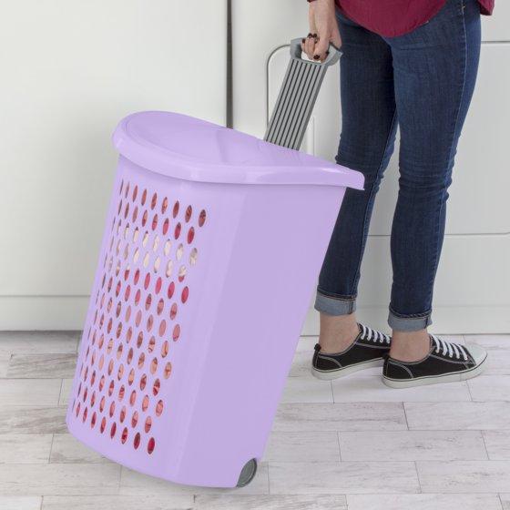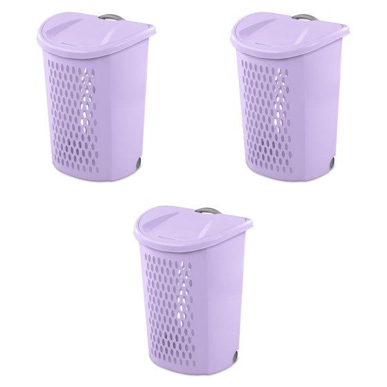 - Sterilite Ultra™ Wheeled Hamper, Plastic Laundry Hamper with Wheels for Easy Transport, Lilac Bud, 3 Pack