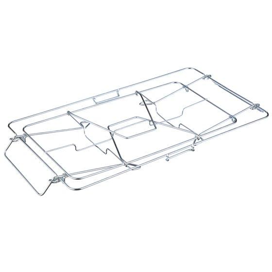 Entertain and serve those tasty dishes on a dime using the Sterno Folding Wire Rack Chafing Dish. Be prepared for celebrations and festive galas in a flash. It is a nice addition to use at family reunions, receptions, parties and more. It sets up in a snap for quick, easy, buffet-style dining. Durable, convenient and resourceful to use time and time again. Fold away flat to save space and works with standard food service aluminum water and food pans. It is a nice companion for food caterers and personal chefs. Display your entrees like the pros and inspire others. Arrange the wire chafing dish by placing it anywhere that food will be served. Collect more than one of the Sterno Pop-Up Wire Rack Chafing Dish to display an attractive presentation for guests and loved ones. Holds 2 cans of Sterno Canned Heat.