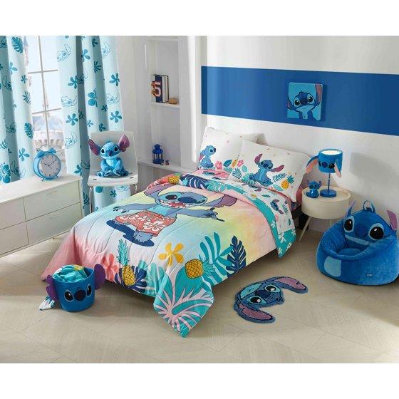 Transform your child’s room with this Lilo and Stitch Kids 2-Piece Twin/Full Comforter Set. The colorful, front design of this comforter features Stitch, while the reverse of the comforter features a simple but vibrant floral pattern. This reversible Lilo and Stitch comforter measures at 72 x 86, making it the perfect fit for any twin or full size bed, along with one 20 x 26 pillowcase to complete the look. This 2-piece comforter set is made entirely of 100% super soft microfiber and is machine washable for easy and convenient care. Coordinating twin and full sheet sets, blankets and throws are sold separately only on Walmart.com.