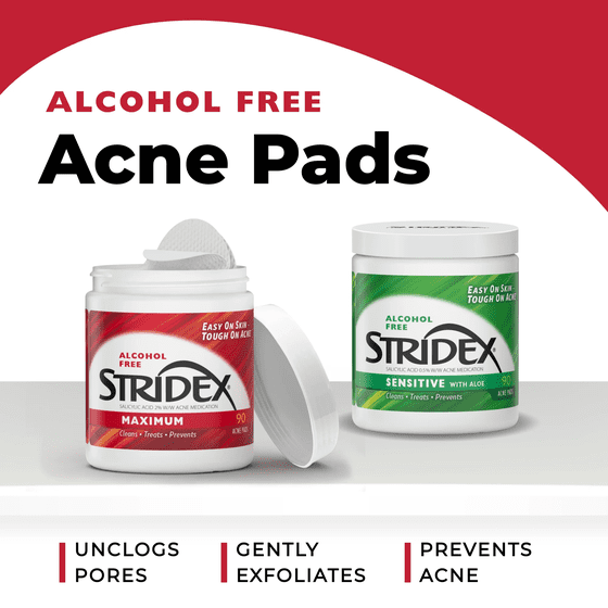 - Alcohol-Free: All Stridex pad formulas are completely alcohol-free, so you get proven acne-fighting effectiveness without the skin-irritating burn and redness that can be an additional nuisance.