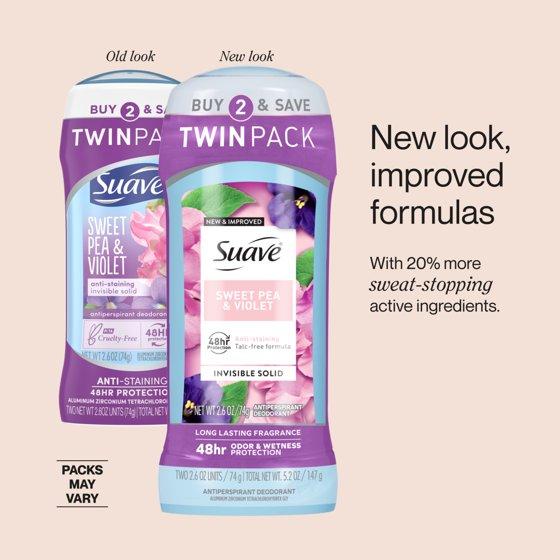 Suave Antiperspirant Female Deodorant, 48hr Protection Sweet Pea & Violet, 2.6 oz, 2 Pk