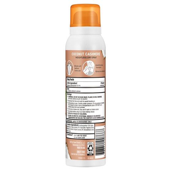 - 48-HOUR SWEAT & ODOR PROTECTION: Experience long-lasting freshness with Suave Coconut Cashmere Dry Spray Antiperspirant Deodorant, delivering up to 48 hours of reliable sweat and odor protection with a clean, weightless feel