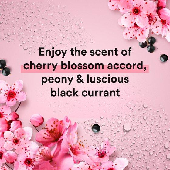 - Captivating scents of cherry blossom, jasmine and black currant that bloom in the shower