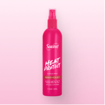Turn up the heat without the damage with Suave Heat Protect Shield Spray, your go-to defense for smooth, shiny, and healthy-looking hair. Designed to protect against temperatures up to 450°F, this lightweight formula helps prevent heat-induced breakage, frizz, and dullness for soft, manageable styles every day. Infused with amino acid complex, Suave Heat Protect Shield Spray nourishes and conditions while shielding each strand from styling damage. It’s ideal for use before blow drying, flat ironing, or curling to maintain your hair’s strength and natural shine. Perfect for all hair types, this heat protectant spray reduces blow dry time and prepares hair for easy styling, helping you style with confidence, protect with care, and shine effortlessly. Suave is committed to quality, affordability, and accessibility, empowering everyone to look, smell, and feel their best every day. Cruelty-free and never tested on animals, Suave has offered professional-quality haircare and skincare products for over 75 years. Experience trusted performance and enjoy the iconic formula in a fresh, new look.