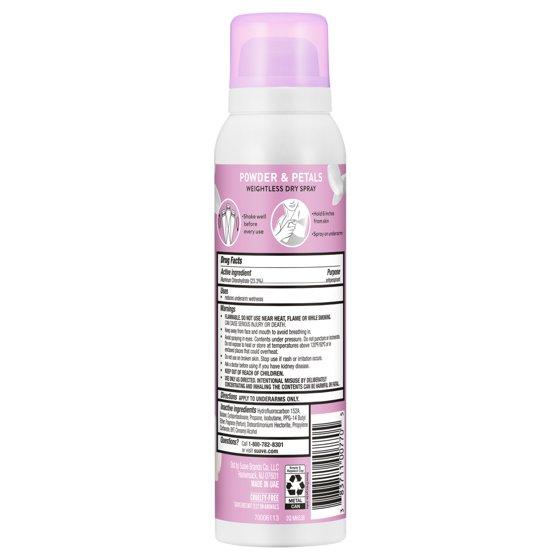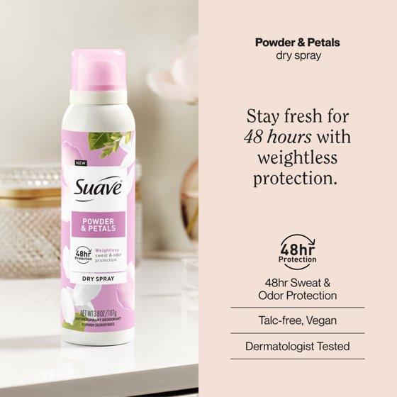 - 48-HOUR SWEAT & ODOR PROTECTION: Experience long-lasting freshness with Suave Powder & Petals Dry Spray Antiperspirant Deodorant, delivering up to 48 hours of reliable sweat and odor protection with a clean, weightless feel