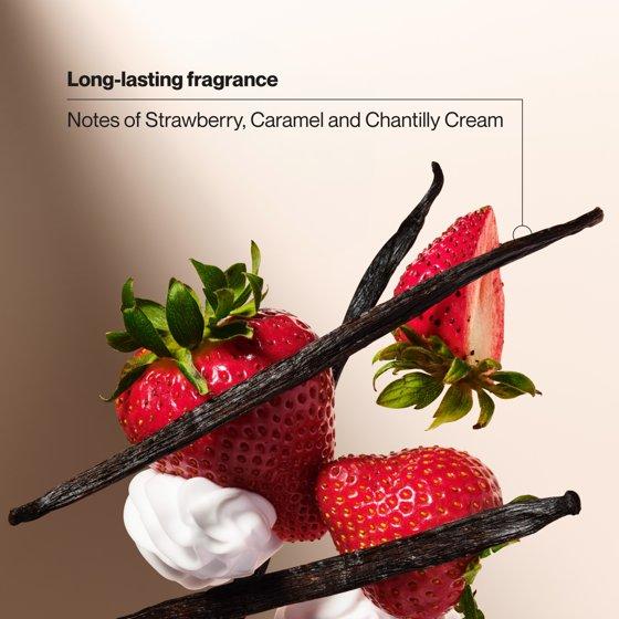 - Irresistible fruity fragrance of strawberries, caramel, and Chantilly cream