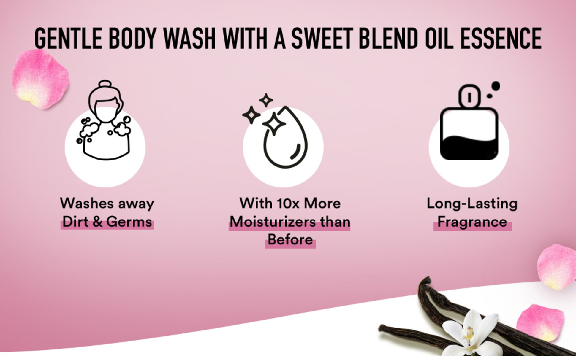 - COMFORTING FRAGRANCE: With comforting notes of rich vanilla cream, sparkling rose, and sandalwood Suave Body Wash leaves skin lightly scented for a long-lasting, just-showered confidence